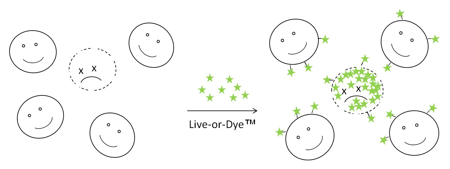 Principle of Live-or-Dye discrimination of live and dead cells.