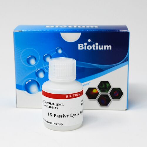 1X Passive Lysis Buffer 2.0 is a cell lysis buffer that is designed for use with Biotium’s Firefly & Renilla Luciferase Single Tube Assay Kit (30081). Those kits are supplied with sufficient lysis buffer to perform the stated number of assays with cells grown in 96 – 24 well plates. 1X Passive Lysis Buffer 2.0 is sold separately for use with the kits when more lysis buffer (e.g. >100 uL/well) is required.