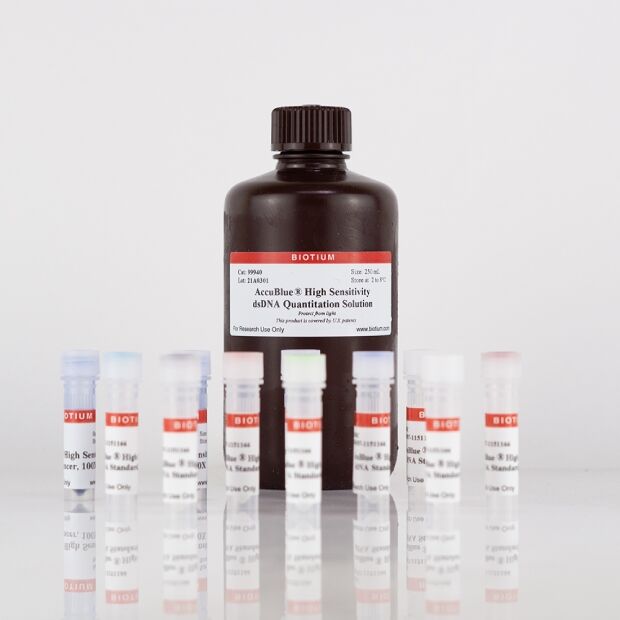 Biotium offers dsDNA quantitiation kits and solutions for different instruments and sample concentration ranges. See the table below and visit the DNA & RNA Quantitation Technology Page for details on our full line of dsDNA and RNA quantitation kits.