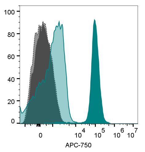 Annexin V is a 35-36 kDa protein that has a high affinity for phosphatidylserine (PS). In normal viable cells, PS is located on the cytoplasmic surface of the cell membrane. In apoptotic cells, however, PS is translocated from the inner to the outer leaflet of the plasmic membrane, making itself available for Annexin V binding. Near-IR CF® Dye Annexin V does not contain azide or other potentially toxic materials, and thus is suitable for in vivo imaging.