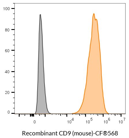 CD9 (clone 24MS04.9) is a validated recombinant rat monoclonal antibody that recognizes the mouse tetraspanin protein CD9. The antibody belongs to the Biotium Choice list of select antibodies that have been developed and validated in-house for optimal performance. This antibody has been validated in flow cytometry.