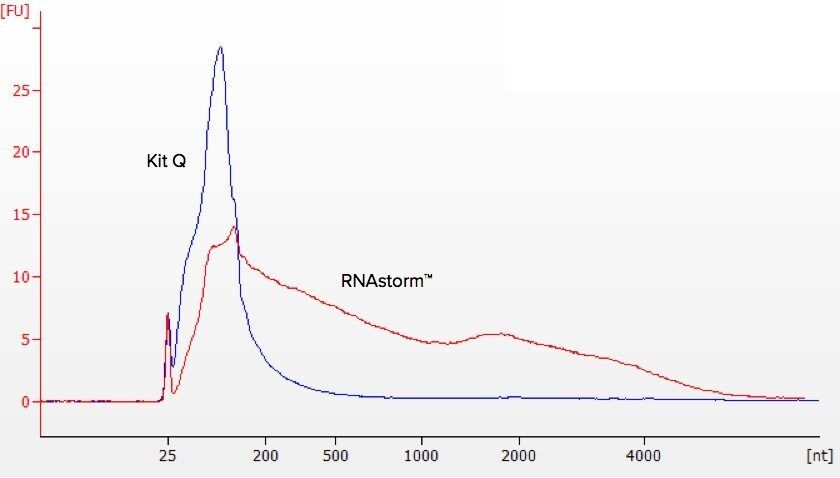 Formalin-fixed tissue samples are a challenge for nucleic acid extraction, often resulting in low yields of amplifiable DNA/RNA and poor performance in subsequent steps involving enzymatic manipulation, including reverse transcription and sequencing library preparation. Powered by proprietary CAT5™ technology, the CELLDATA DNAstorm™/RNAstorm™ 2.0 Combination Kit enhances the removal of formaldehyde-induced damage and provides dual DNA and RNA extraction with higher yield and quality. This allows for improved amplifiability for applications such as RNA-seq, qPCR, microarray, or other gene expression analysis.