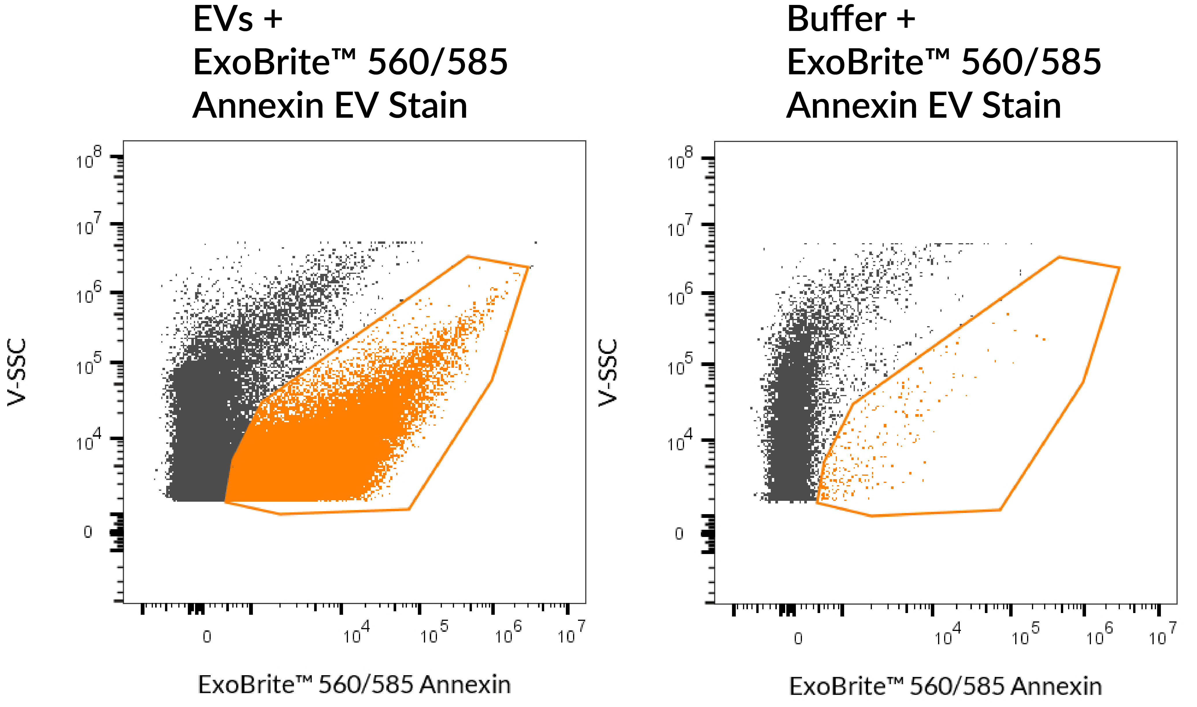 Fluorescent Annexin V conjugates that are optimized for bright and low background staining of extracellular vesicles for flow cytometry.