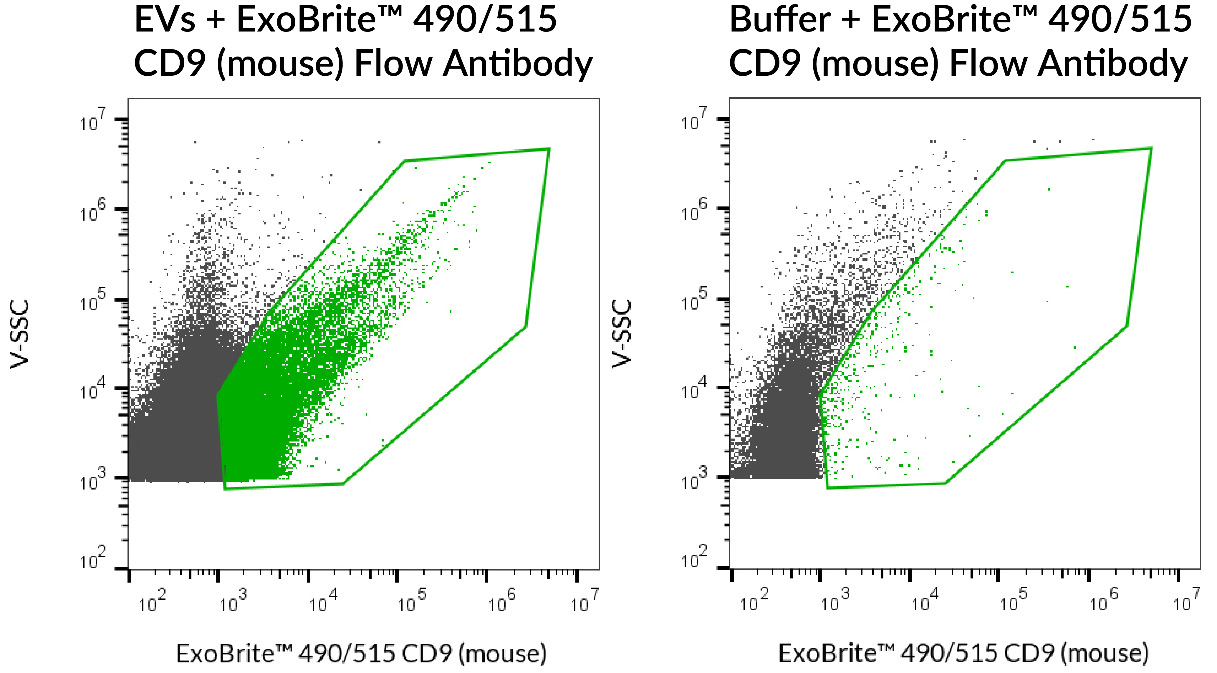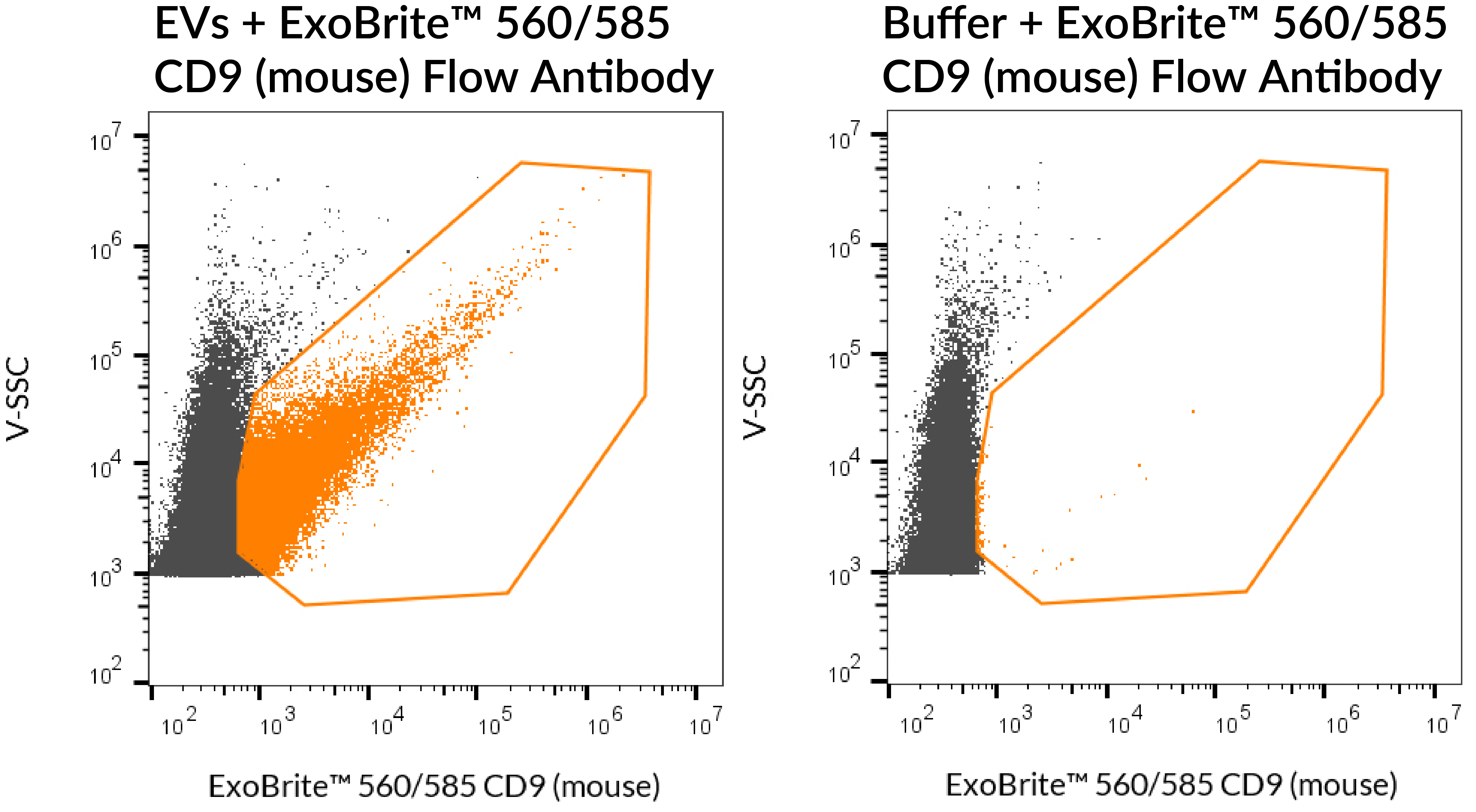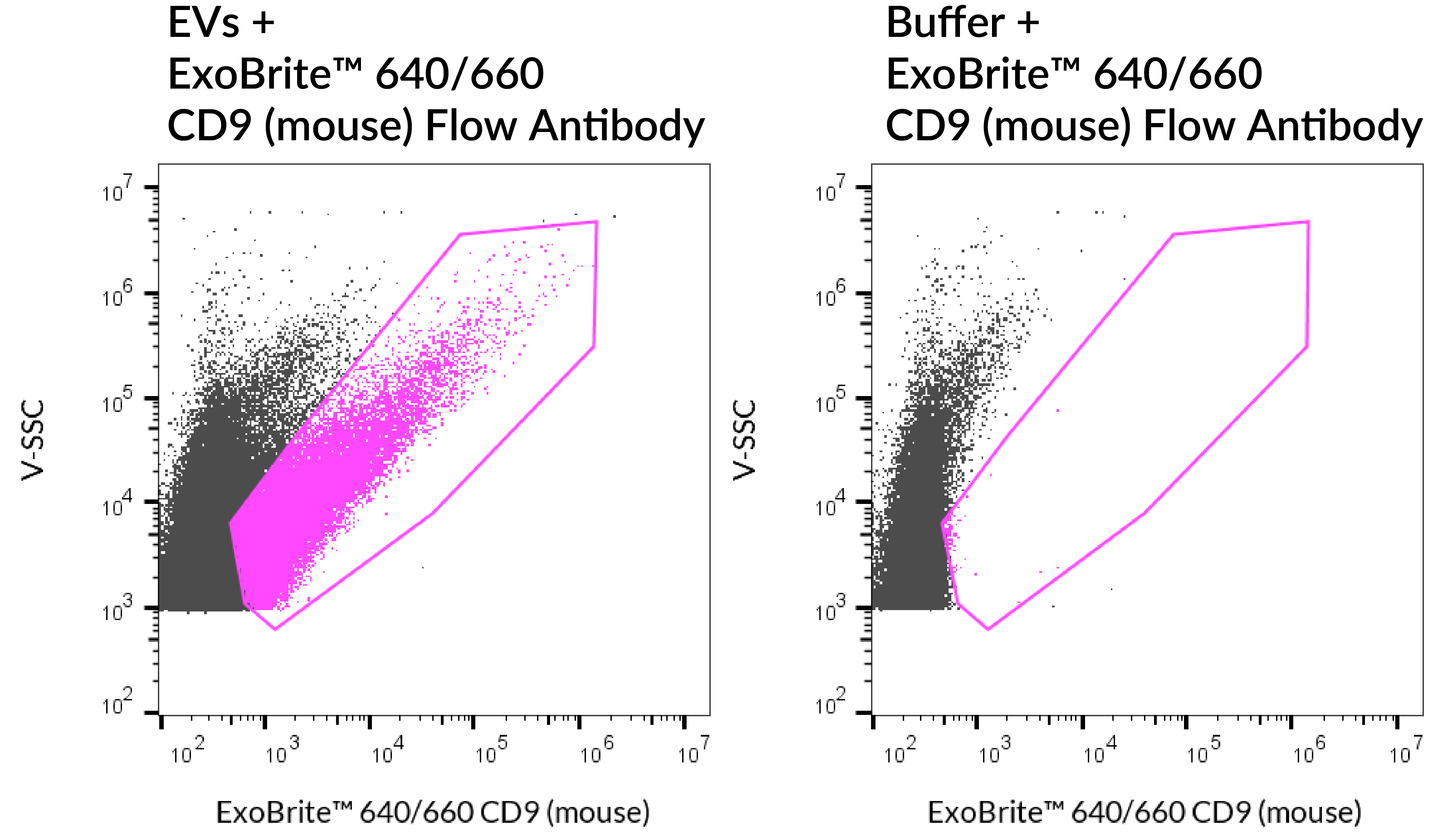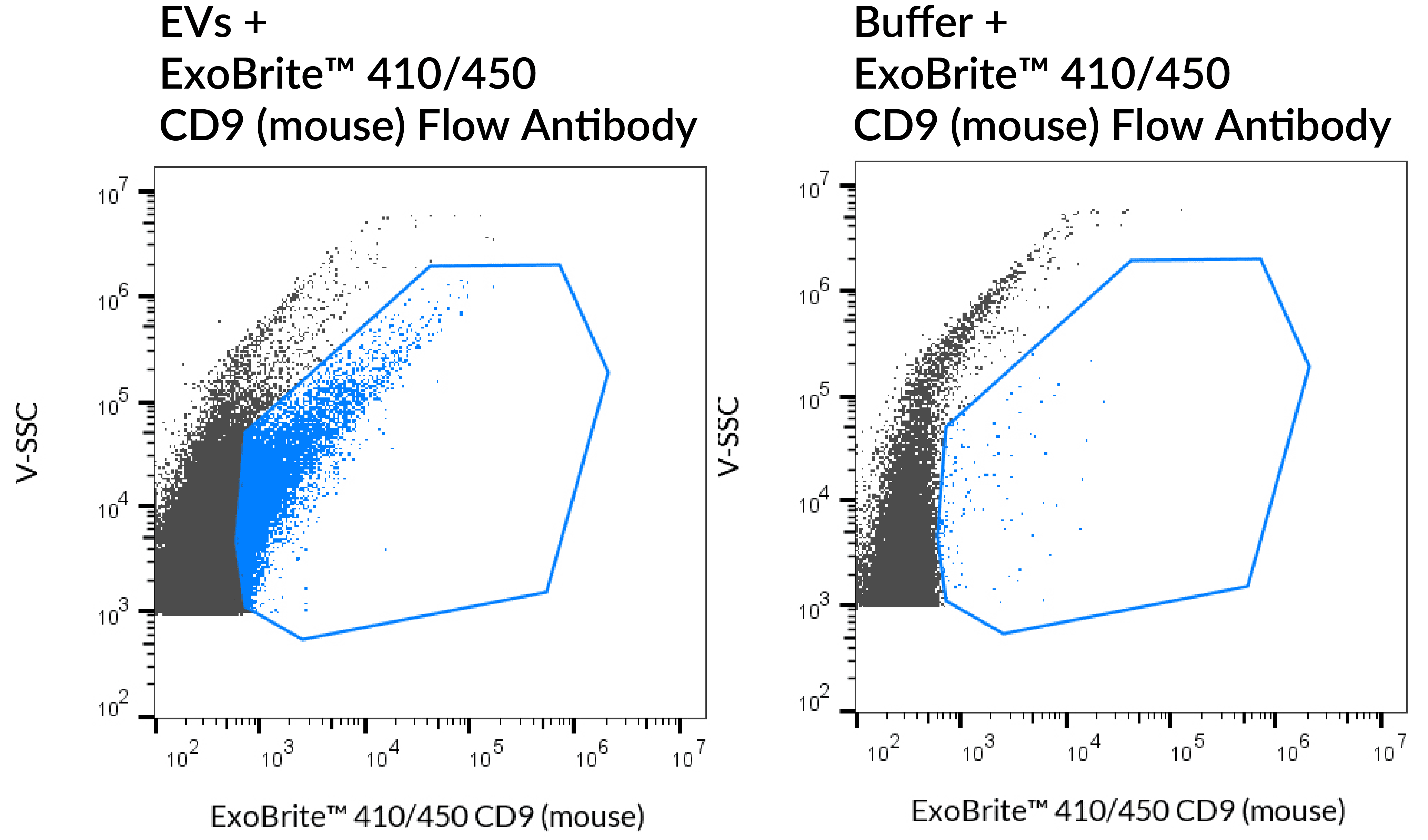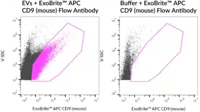 ExoBrite™ CD9 (Mouse) Flow Antibody is validated by Biotium for detection of mouse CD9 EV marker in isolated EVs. The antibody conjugates offer exceptional signal-to-noise and include color options for the Pacific Blue™, FITC, PE, and APC channels.
