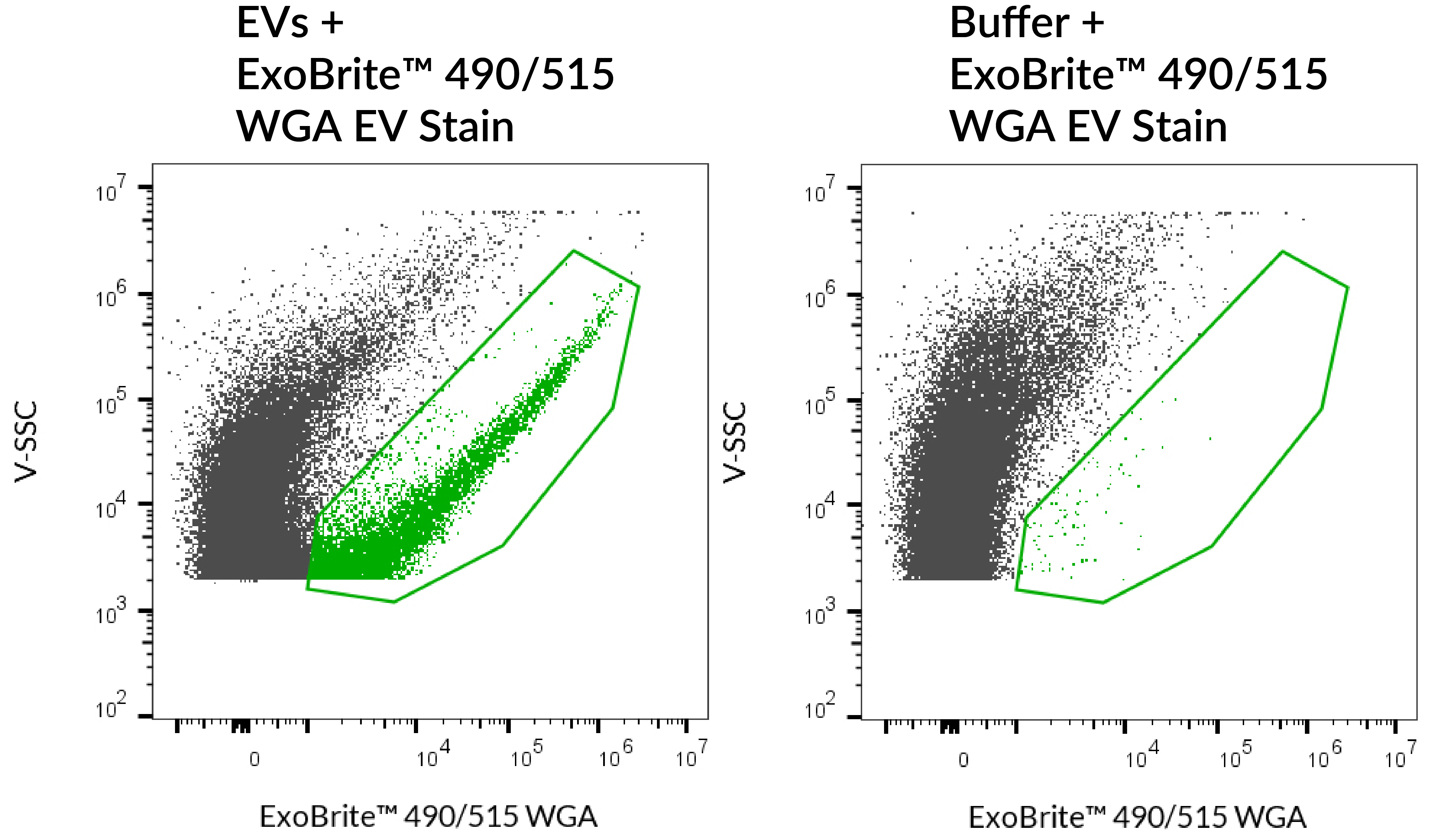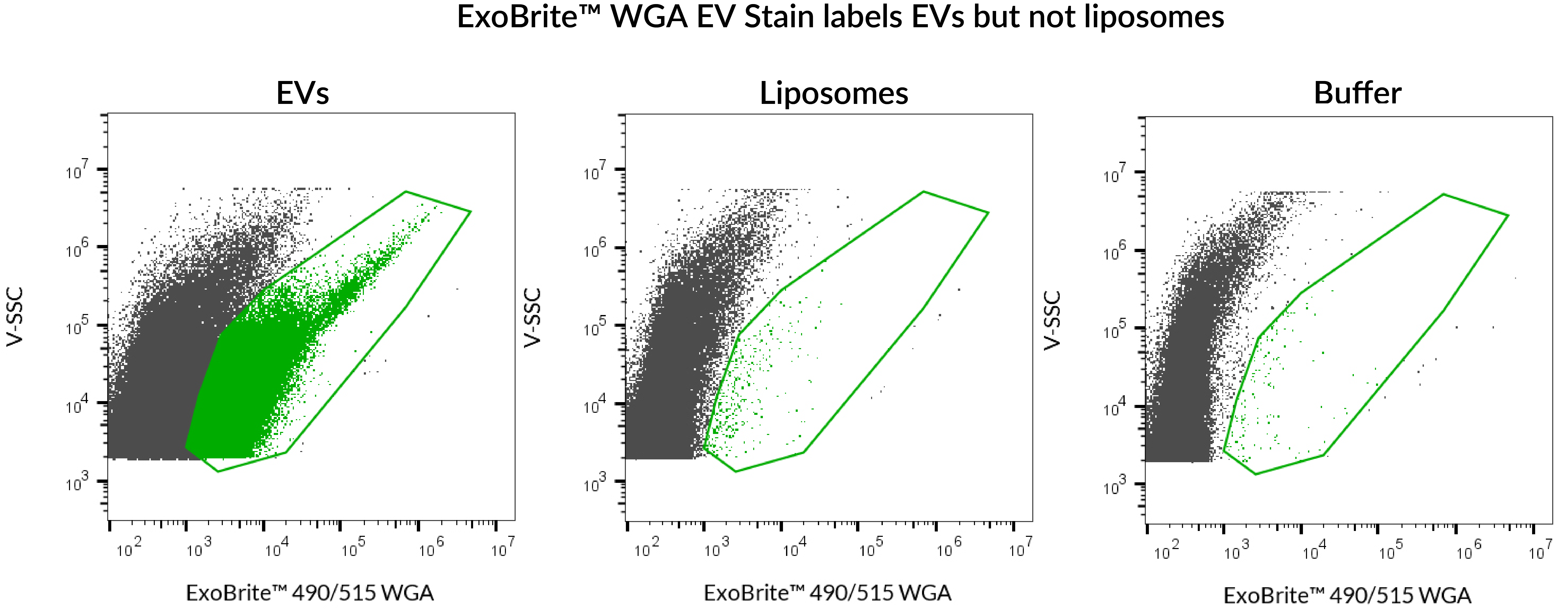 ExoBrite™ WGA EV Staining Kits were designed to overcome some of the challenges of EV detection, particularly in flow cytometry. ExoBrite™ WGA EV Stains bind to molecules in the EV membrane for bright, specific staining, with little background.