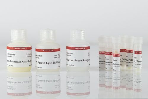 This kit is a new and improved replacement for the Firefly & Renilla Dual Luciferase Assay Kit (catalog no. 30005). Other commercial luciferase assays require you to dilute all of the firefly substrate in the assay buffer, resulting in limited shelf life after first use. In Biotium’s kits, the firefly and Renilla substrates are provided as separate stock solutions that are freshly diluted for every assay, for excellent shelf life with consistent signal over time. The kit features our Aquaphile™ coelenterazine, a water soluble substrate that can be stored at -20°C with minimal evaporation, unlike methanol solutions of coelenterazine.