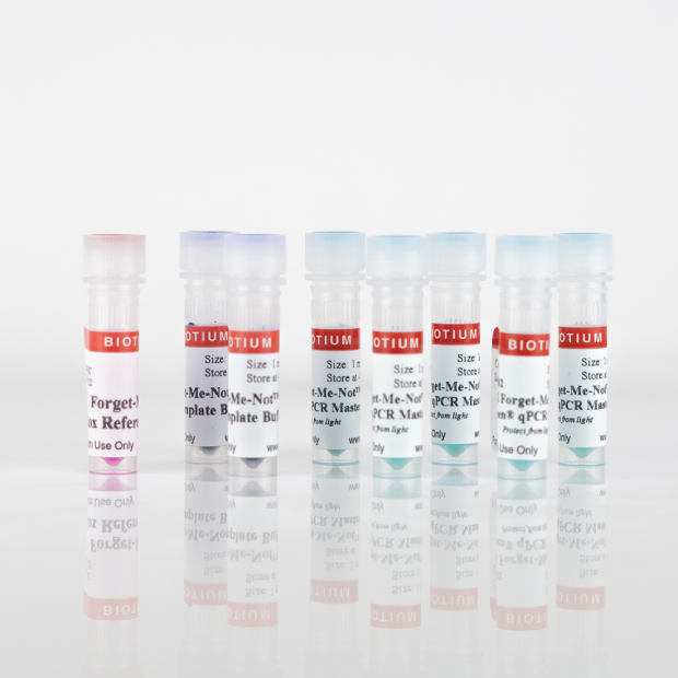 2X Forget-Me-Not™ EvaGreen® qPCR Master Mix is a ready-to-use high performance dye-based master mix for qPCR and DNA melt curve analysis. The 2X Master Mix contains EvaGreen® dye, Cheetah™ HotStart Taq DNA Polymerase, dNTPs, and a low concentration of an inert blue dye, which allows the user to easily distinguish wells containing reaction mix from empty wells. For 2-color tracking, mix your template with Forget-Me-Not™ Template Buffer to see at a glance which wells have master mix or template.