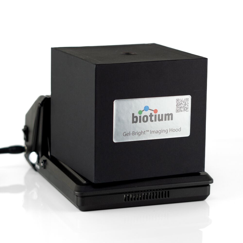 Capture an image of your gel with any device using the included Gel-Bright™ Imaging Hood. Simply place the imaging hood over the filter and image the gel through the small opening at the top using a camera or smart phone.