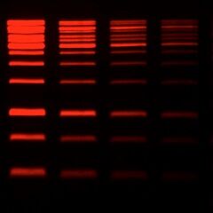| Post-electrophoresis staining with GelRed® 10,000X in water or GelGreen® 10,000X in water - or - GelRed® 3X in water | No fluorescent dye is added to the gel, it is stained in 3X GelRed® or 3X GelGreen® solution after electrophoresis | • Most accurate sizing/sharpest bands • Staining solution can be re-used • Enhance sensitivity by adding NaCl | Extra staining step (up to 30 minutes) after electrophoresis (some customers report good results after only 5 minutes if dye is not reused) | • Highly accurate band sizing • Gels with more than ~100 ng DNA per band • Analyzing restriction digests |