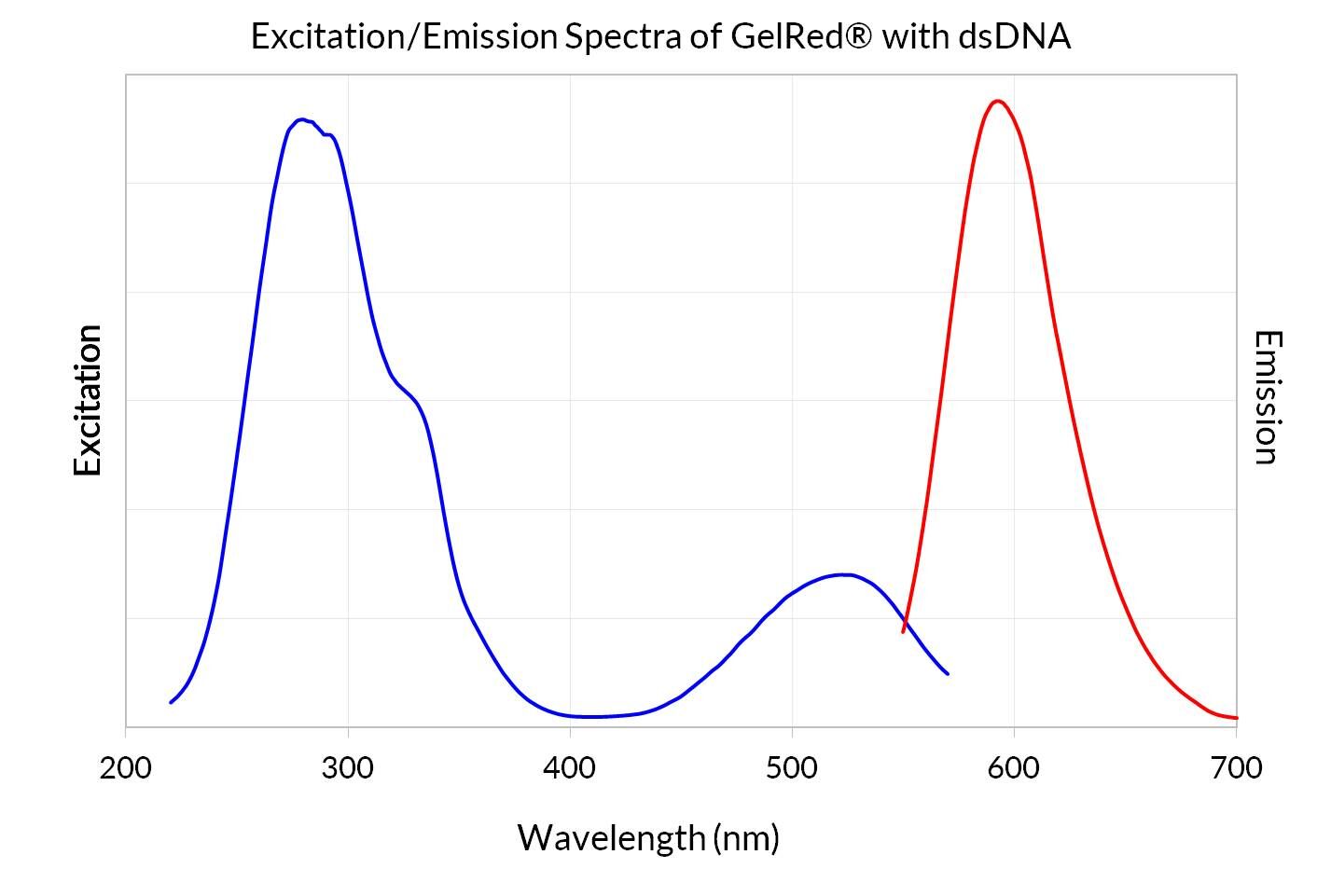 GelRed® is a sensitive, stable and environmentally safe fluorescent nucleic acid dye designed to replace the highly toxic ethidium bromide (EtBr). GelRed® and EtBr have virtually the same spectra, so you can directly replace EtBr with GelRed® without changing your existing imaging system. In addition, GelRed® is far more sensitive than EtBr, which cannot be used in DNA loading buffer to prestain DNA. GelRed® is compatible with downstream applications such as sequencing and cloning. It is efficiently removed from DNA by gel extraction kits or by phenol/chloroform extraction and ethanol precipitation.