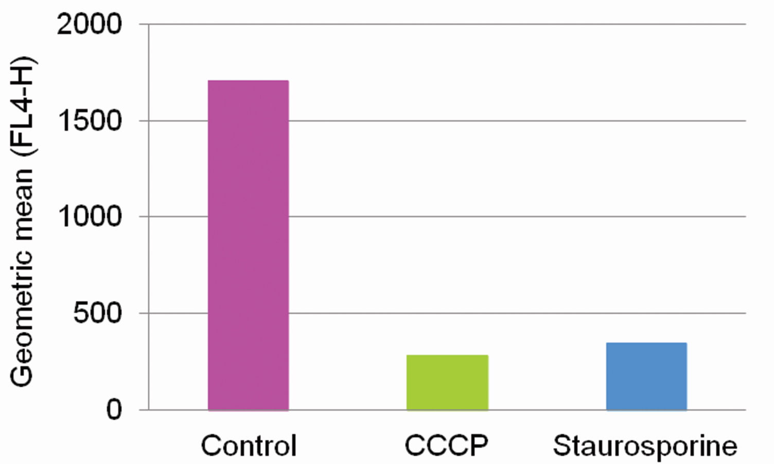 However, some dyes are still retained in mitochondria after depolarization. Our dye chemists hypothesize that this is because some of the dyes are more lipophilic than others. Once they accumulate in the mitochondria because of their charge, they are less likely to diffuse back into the cytoplasm due to their hydrophobicity, even after the proton gradient that attracted them is dissipated by mitochondrial depolarization. Probably they associate with the mitochondrial membranes instead.