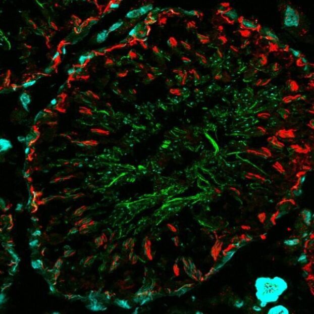 Dyes that carry multiple negative charges can introduce background. Usually, this is more of a concern with labeled antibodies that carry many dyes, as opposed to a small toxin like bungarotoxin. When staining tissues, the endogenous autofluorescence of the tissue itself is often the most significant source of background. Endogenous fluorescence background in tissue is usually highest in the blue wavelengths (DAPI channel) and lowest in the far-red (Cy®5 channel). Our CF®633 bungarotoxin (catalog no. 00009) is a far-red conjugate for the Cy®5 channel with a low negative charge that should have low background from either the dye or autofluorescence.