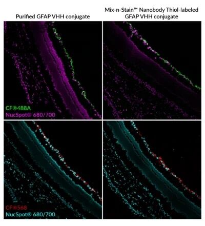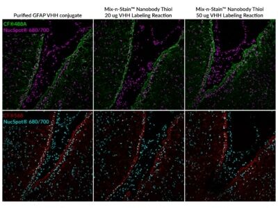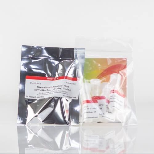 | Mix-n-Stain™ Nanobody Labeling Kits | CF® Dyes | 5-20 ug Nanobody® 20-50 ug Nanobody® | ~ 30 min. | • Optimized for Nanobodies® • Tolerates BSA & other additives |