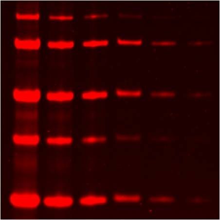 One-Step Lumitein™ UV Protein Gel Stain is a ready-to-use luminescent red protein gel stain optimized for use on UV transilluminators. With no fixation or wash steps required, One-Step Lumitein™ UV is a great choice for convenience and safety. One-Step Lumitein™ UV can detect as little as approximately 1-10 ng of protein per band.