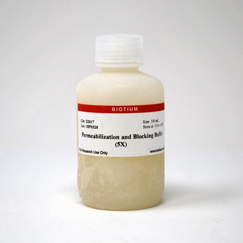 The Permeabilization and Blocking Buffer (5X) is a concentrated stock solution for one step cell permeabilization and blocking. It is designed for use during immunofluorescence staining for fluorescence microscopy.