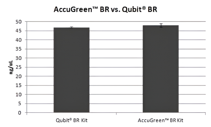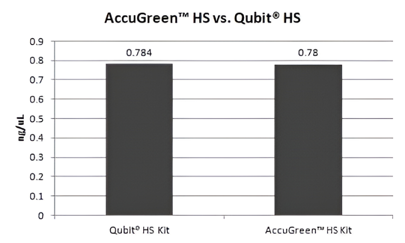 - AccuGreen™ assay kits are direct replacements for the Qubit® assay kits