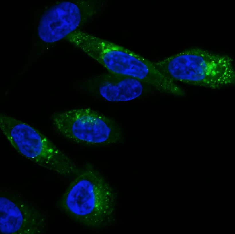 | Calcein AM | • Membrane-permeable compound is hydrolyzed in live cells to release water soluble green fluorescent dye • Uniform intracellular labeling • Dead cells don't retain dye, for true endpoint viability assay |