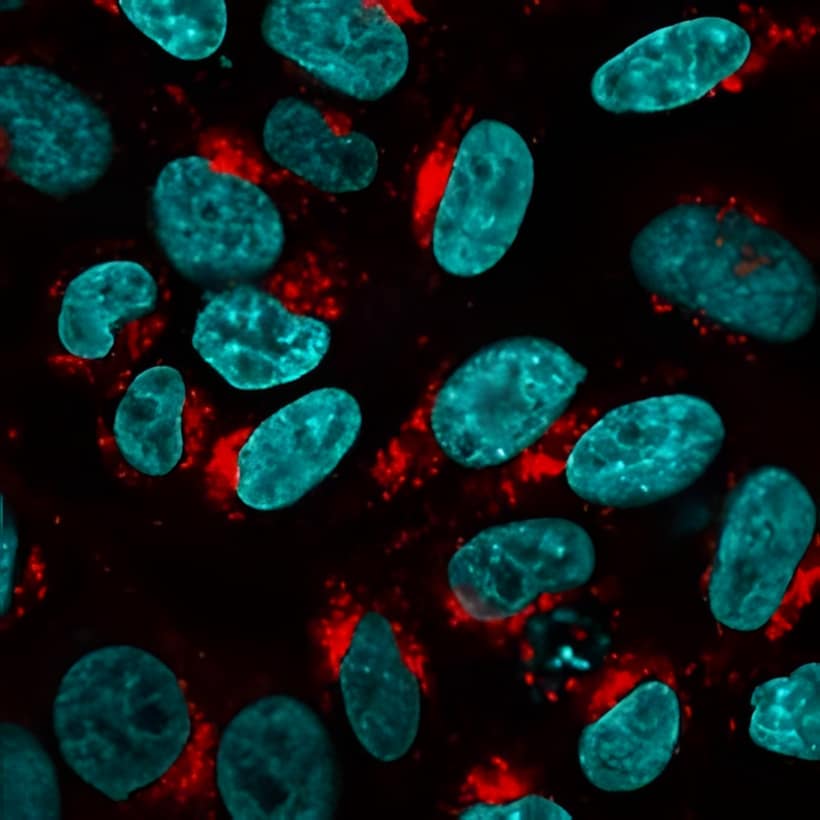 RedDot™2 is membrane impermeant and can be used as a selective dead cell stain, or as a nuclear counterstain for fixed cells. RedDot™2 shows better nuclear specificity in fixed cells than DRAQ7™, which requires a blocking step for nuclear-specific counterstaining. RedDot™2 has also been validated for tissue clearing protocols such as CUBIC.