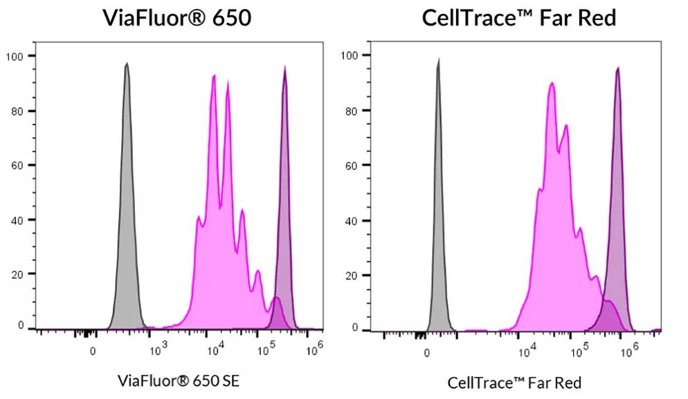 ViaFluor® 650 was designed as an improved and cost-effective alternative to CellTrace™ Far Red for monitoring cell proliferation in the APC channel.