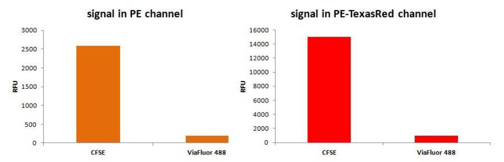 ViaFluor® 488 Has Less Bleed-Through than CFSE