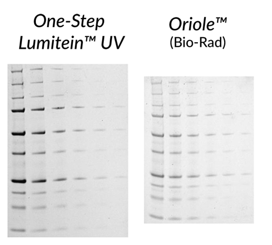 - One-Step Lumitein™ UV as a replacement for Oriole™ and Flamingo™ Protein Gel Stains